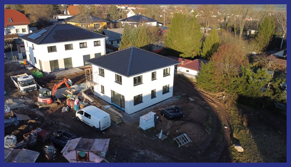 Besondere Beachtung verdient die Vorbereitung für Photovoltaik, die Ihnen die Möglichkeit gibt, zukünftig weitere Energieeinsparungen zu realisieren. Alle relevanten Baugenehmigungen, Anschlüsse und Abnahmen sind im Festpreis inbegriffen, und Eigenleistungen können nach individueller Absprache erbracht werden. Erleben Sie die Perfektion eines Neubaus, der keine Wünsche offenlässt.