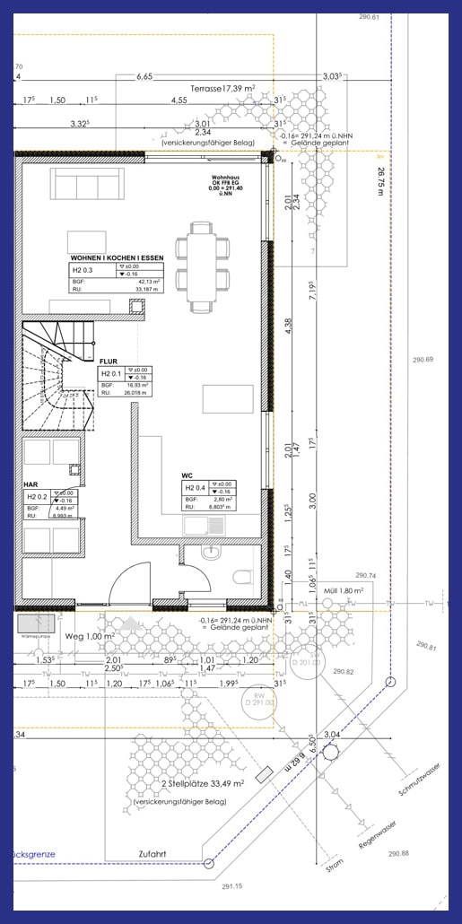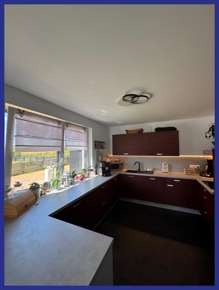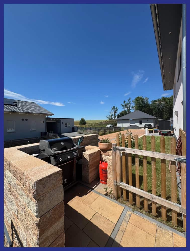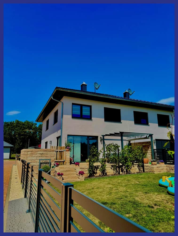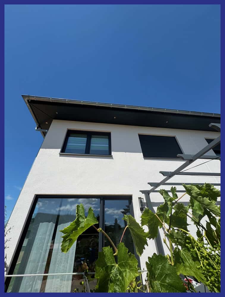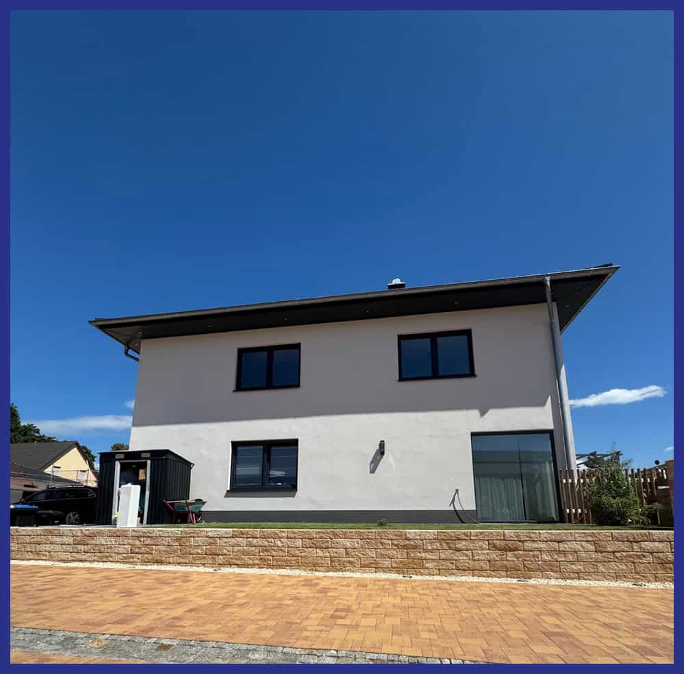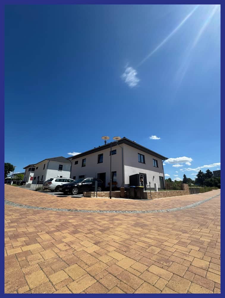 Sie haben ihre Familienoase gefunden. Kein Baustress, alles fertig und vor Übergabe wird das komplette Haus innen nochmal frisch gestrichen. Hier ist einfach Einziehen und Wohlfühlen angesagt. Das sonnenverwöhnte Grundstück empfängt Sie mit einem großformatig gepflasterter Eingangsbereich. Die Außenbereiche und Stellplätze verfügen über LED Beleuchtung. Die moderne Architektur sieht nicht nur klasse aus, sondern verbindet Nutzwert mit optimiertem Sonneneinfall und Beschattung.