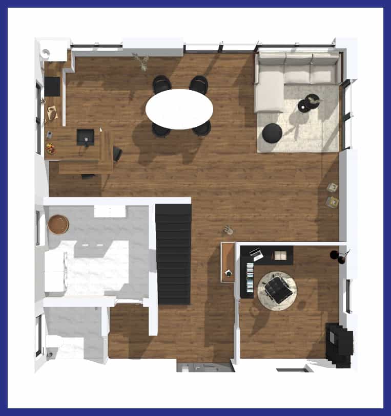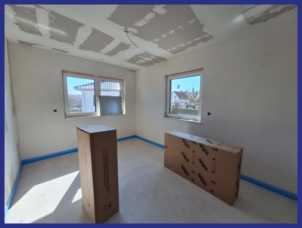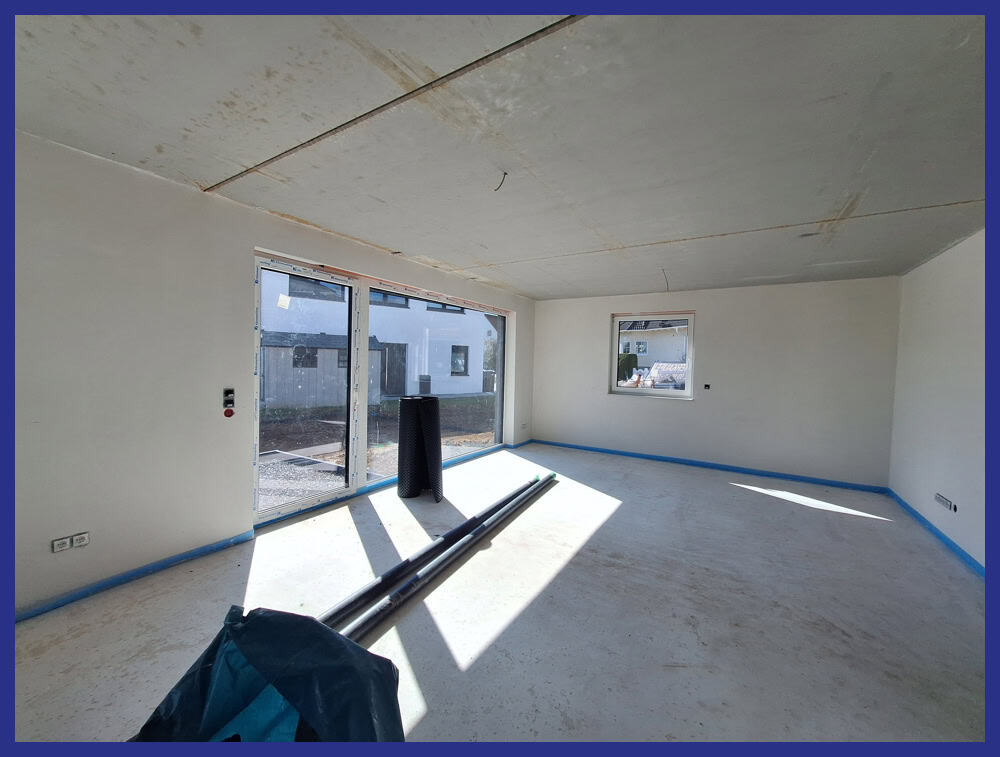 Das Zimmer im EG kann als Homeoffice oder Gästebereich genutzt werden. Die großzügige Wohnebene bietet einen offenen Wohn/Ess- und Kochbereich für die ganze Familie. Die bodentiefen Fenster sorgen für lichtdurchflutetes Wohnen. Ebenerdig gelangen Sie auf den Terrassenbereich und in den Garten, der nach Südwesten ausgerichtet ist.