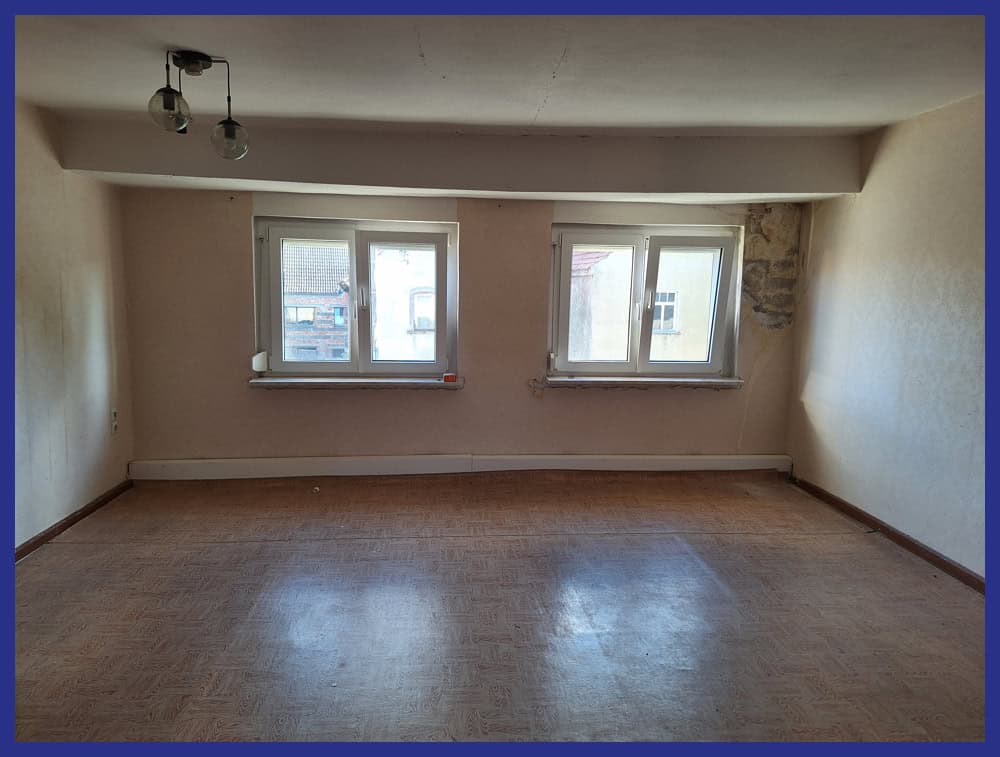 Das Grundstück ist im vorderen Teil mit dem Bauernhaus, Scheune und kleineren Nebengebäuden bebaut. Interessant ist der geschlossene Innenhof. Das Wohnhaus bietet auf 2 Etagen 5 Zimmer und ca. 180 m² Wohnfläche. Das Dachgeschoss ist nicht ausgebaut. Das Objekt ist teil saniert. So wurden größtenteils Kunststofffenster mit Isolierverglasung, eine Ölzentralheizung eingebaut. Die Räumlichkeiten sind großzügig geschnitten und ermöglichen individuelle Nutzungen. Insgesamt ist für eine zukünftige Nutzung von einer energetischen Ertüchtigung der Gebäudehülle, der Modernisierung der Räumlichkeiten auszugehen. Mit etwas Geschick entsteht hier ein individuelles Wohnhaus mit dem Charme und Charakter des ehemaligen Bauernhauses.