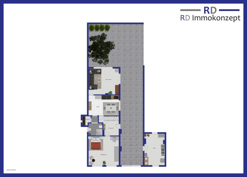 Das rückwärtige Grundstück erreicht man durch die Scheune, und verfügt über eine hintere Zufahrt und wird als Obst- und Freizeitgarten genutzt.