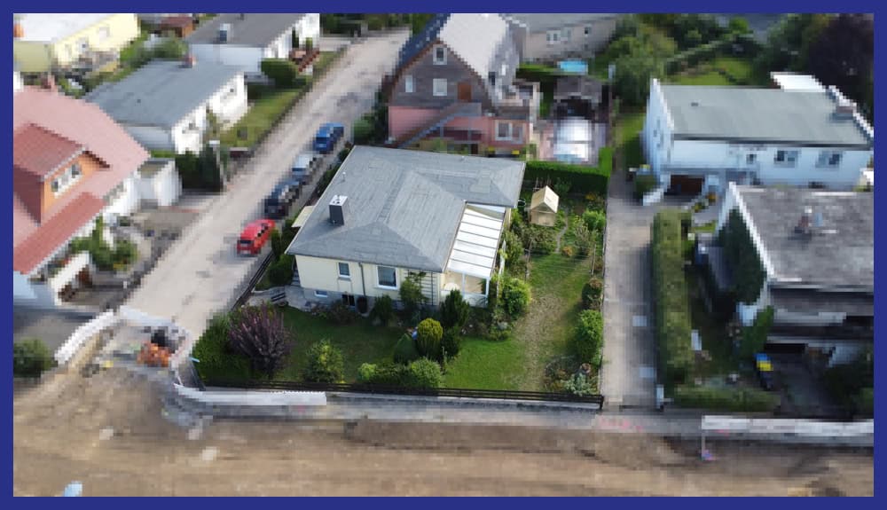 Das Grundstück ist perfekt ausgerichtet. Eingang und Garage gehen nach Norden. Terrasse und Garten öffnen sich nach Süden. Die mit einem Glasdach und elektrischer Markise versehene Terrasse lässt sich mit ca. 20m² wie ein erweitertes Wohnzimmer nutzen.