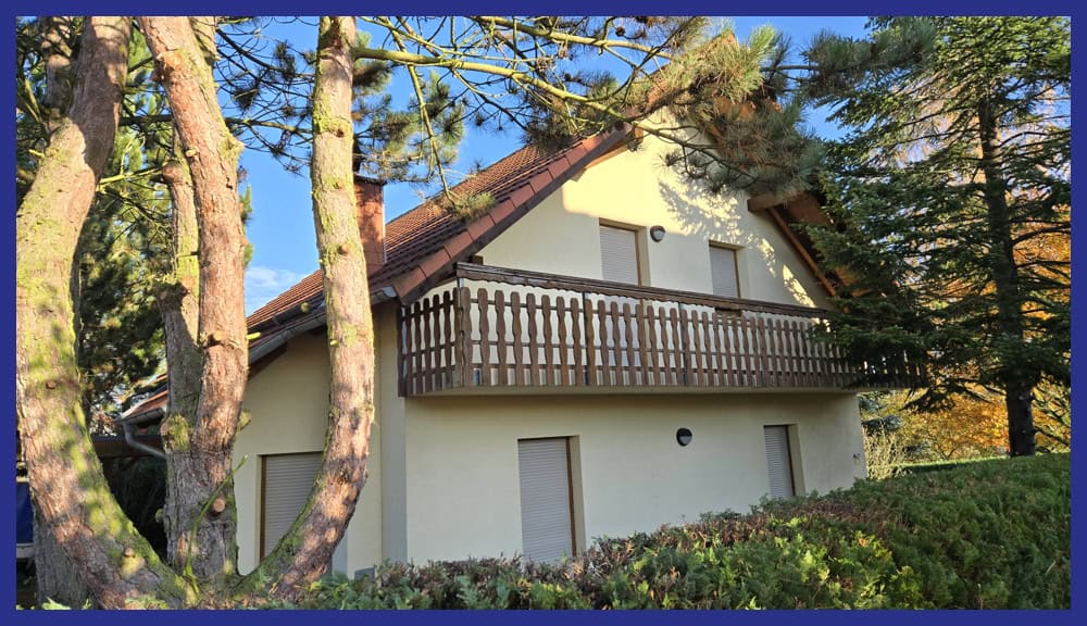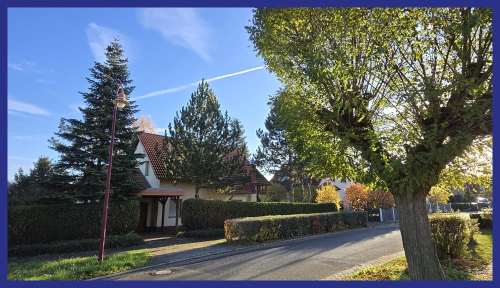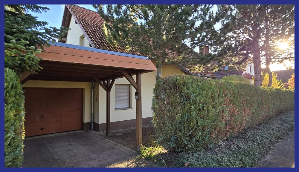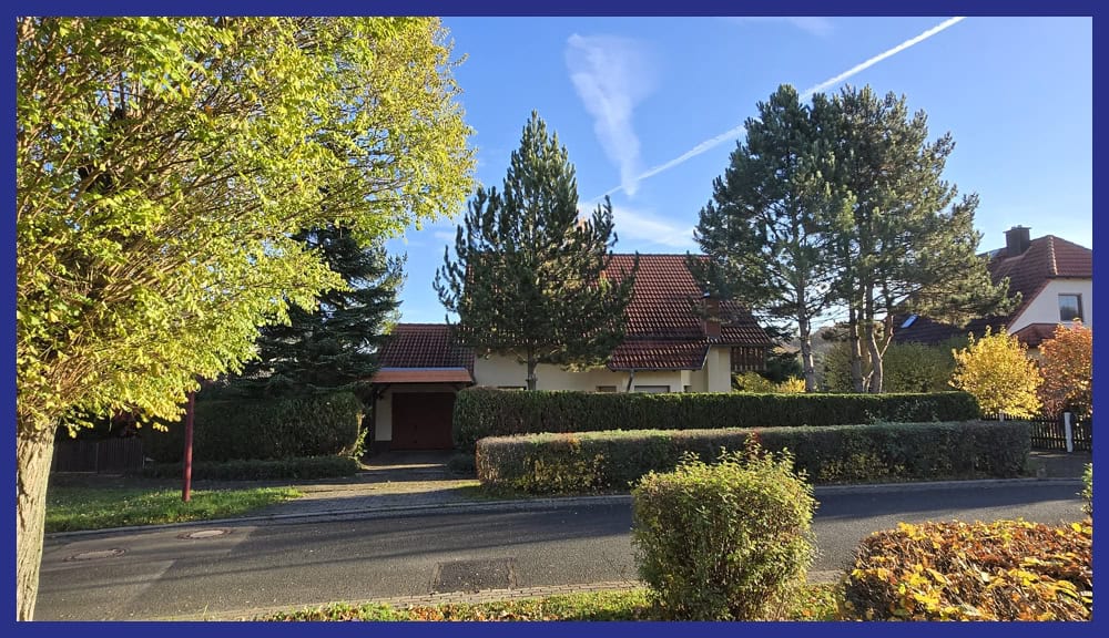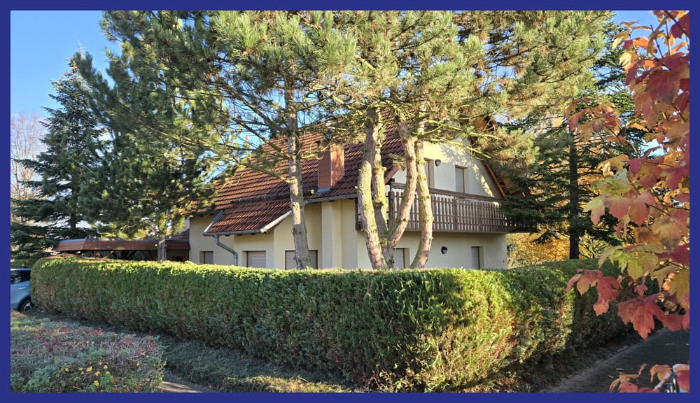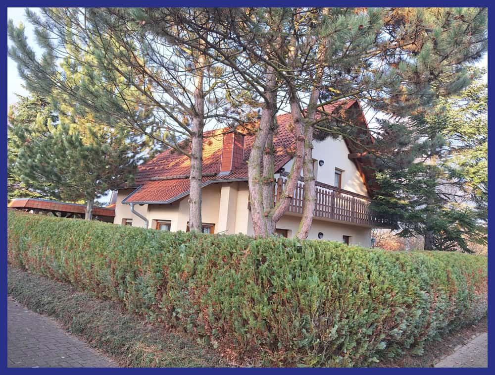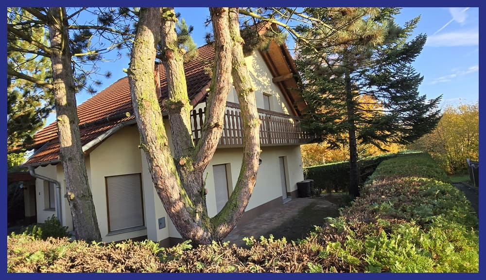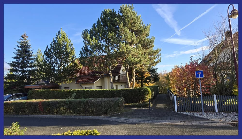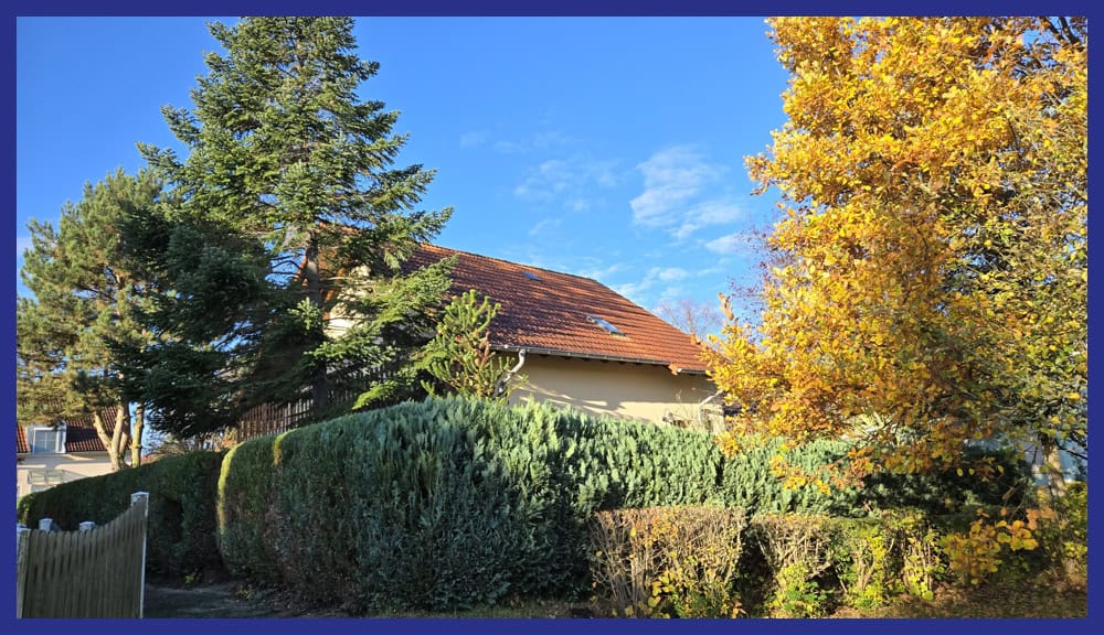 Das gesamte Grundstück ist sehr grün und mit Bäumen eingewachsen. Hier wäre sicherlich ein Rückschnitt empfehlenswert.