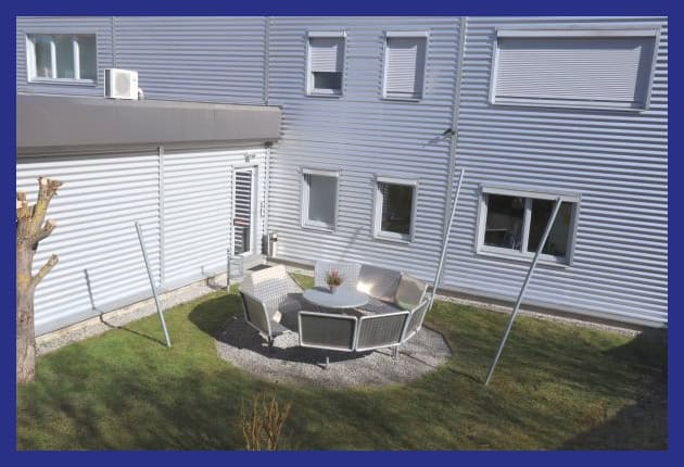Der sich daran anschließende Büro- und Werkstatttrakt verfügt über helle, großzügige Büro- und Ausstellungsflächen, genauso über zwei Werkstattbereiche. Ein rückwärtig angegliederter, fürs Personal nutzbarer Gartenbereich sorgt für eine direkt angrenzende Erholungsfläche für Pausen oder Feierabend.